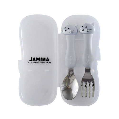 قاشق و چنگال کودک مدل دسته سیلیکونی عروسکی طرح پیشیناموجود