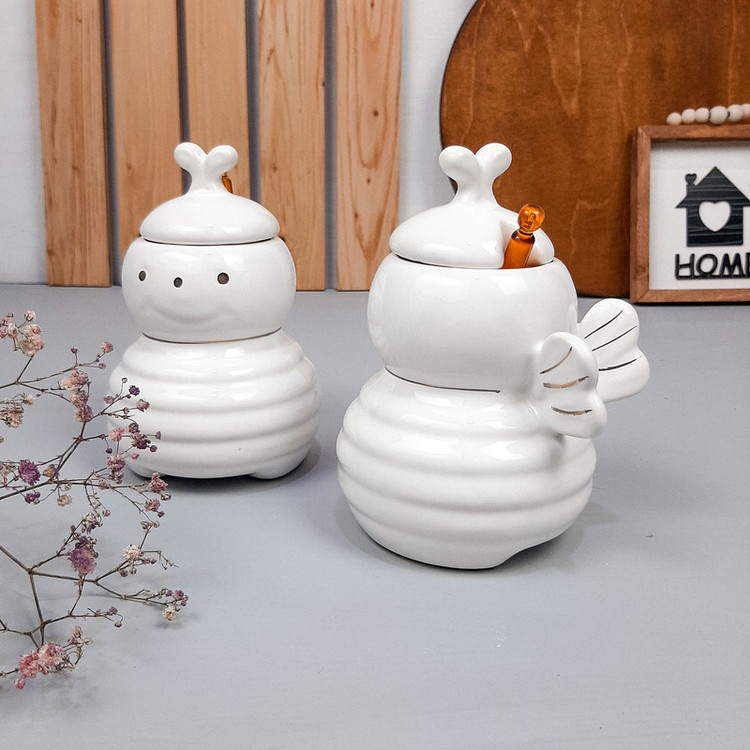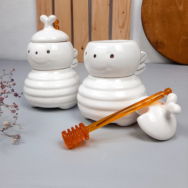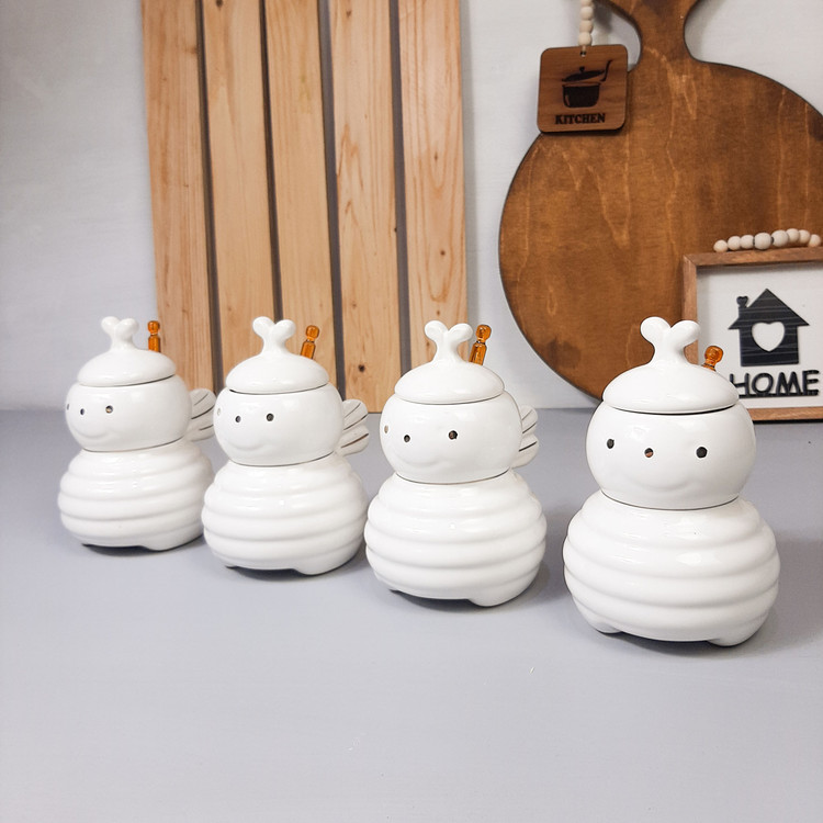 جنس بدنه و درب چینی میباشد | به همراه قاشق پلاستیکی رنگ عسل