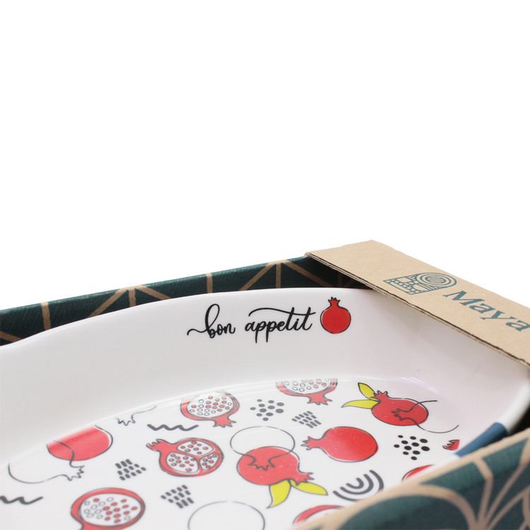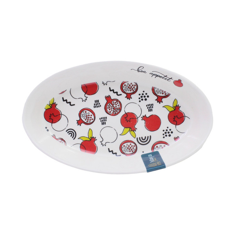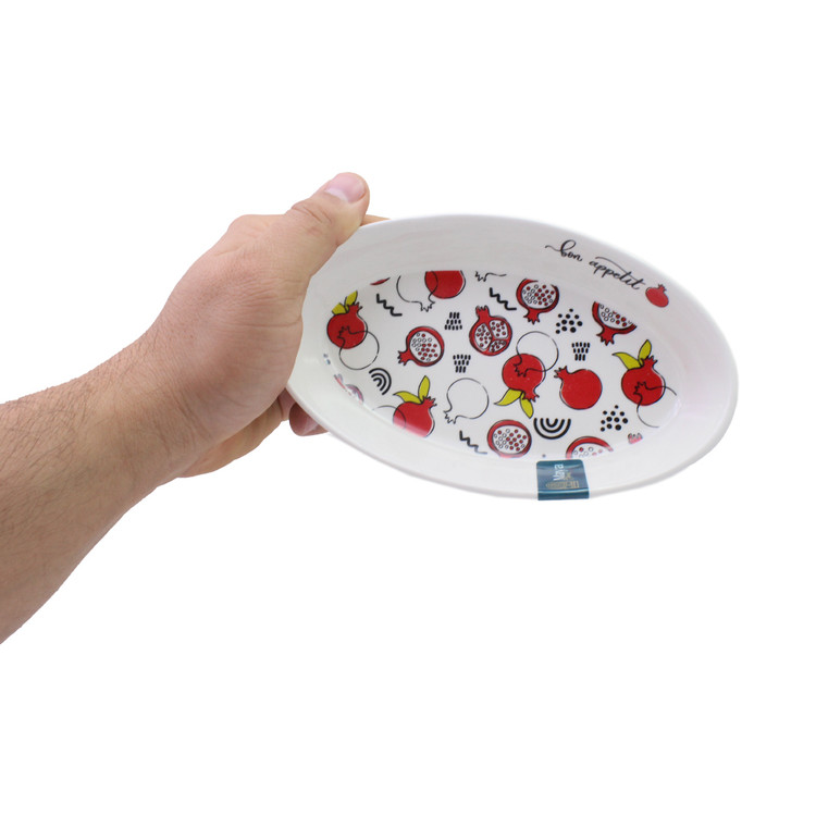 تابه میوه ای مایا مدل طرح انار محصولی از جنس سرامیک است. از این محصول به عنوان زیتون خوری، انواع خوراکی، ترشی و غیره استفاده کرد. ایم محصول در طرح های مختلف تولید شده و ظاهر بسیار جذاب و دوشت داشتنی دارد و می تواند میز شما را زیباتر جلوه دهد.