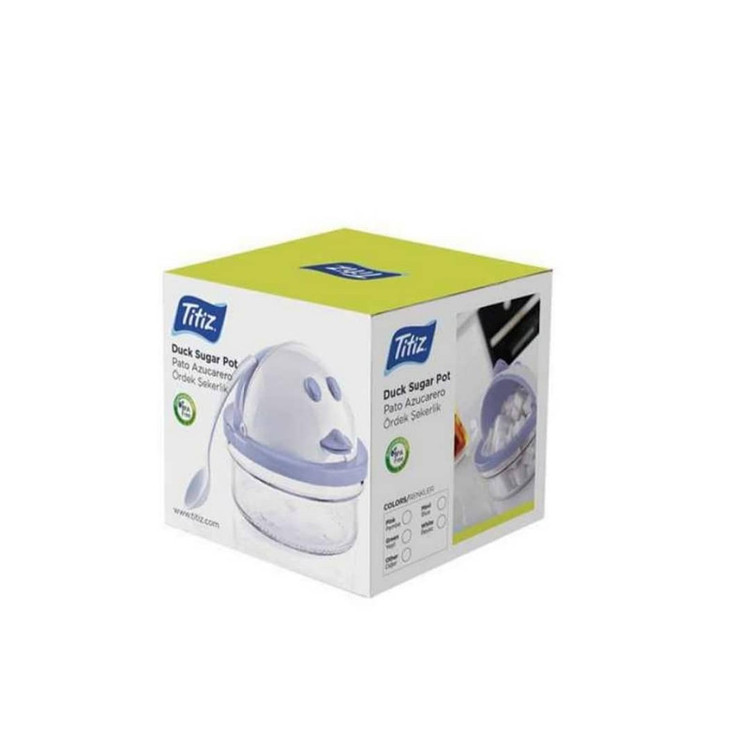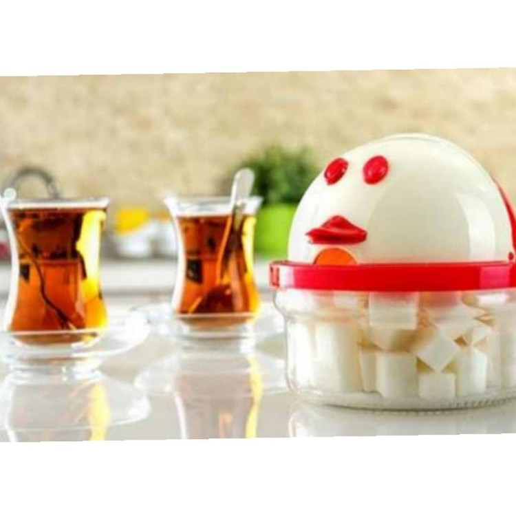 - ظرف سرو شکر و قند - دارای یک درپوش پلاستیکی طرح اردک - دارای یک قاشق پلاستیکی به طول 12 سانتیمتر - گنجایش ظرف 415 میلیلیتر - ارتفاع ظرف بدون درپوش 5.2 و همراه با درپوش 11 سانتیمتر - ساخت ترکیه