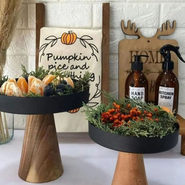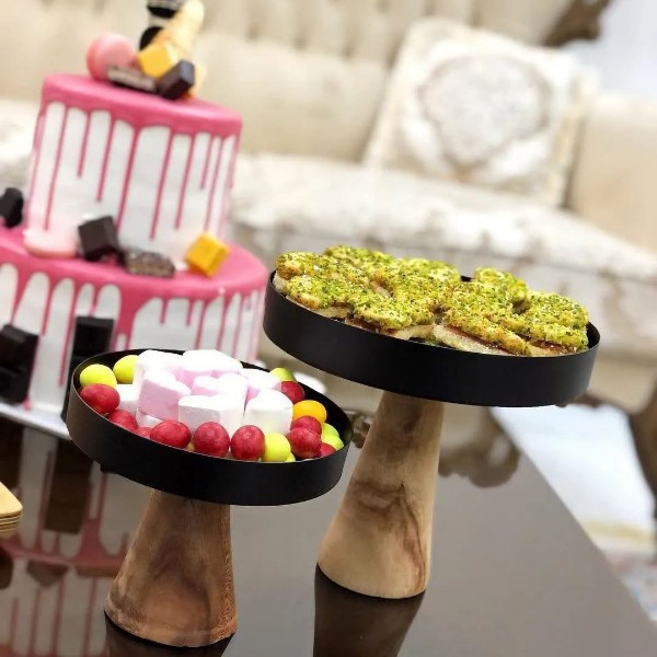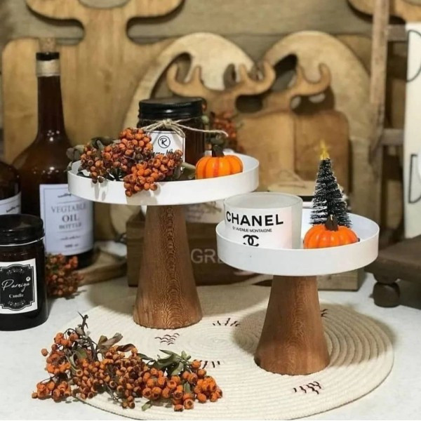 لطفا به ابعاد توجه شود ابعاد استند بزرگ: 20x20x19 ابعاد استند کوچک: 15x15x14 جنس پایه چوب