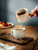 سس خوری مدل پیرکس دسته چوبی با حجم 300cc بسیار مقاوم است. این ظرف به شکل استوانه هلالی شکل کوچک می باشد و دسته ی چوبی کوچک و ظریفی کنار آن قرار گرفته است که توسط آن می توان سس خوری را جابه جا کرد و همین طور با کمی خم کردن ظرف سس را روی غذا ریخت. از شیشه پیرکس با کیفیت بالا که بدون حباب و شفاف است ساخته شده است و در برابر حرارت مقاوم است و می توان از آن برای جوشاندن شیر، دم کردن یک فنجان کوچک قهوه استفاده کرد. از آن می توان برای ریختن آبلیمو، انواع سس، مربا و … هم استفاده نمود. همچنین وسیله ای مناسب برای استفاده در رستوران و هتل ها می باشد.قابل شست و شو می باشد. ابعاد بسیار کوچکی دارد و فضای زیادی از کابینت شما را اشغال نمی کند. به دلیل ظاهر زیبا و جذابی که دارد مناسب برای پذیرایی از میهمانان بر سر میز غذا می باشد و جلوه ی زیبایی به میز شما می بخشد. دسته چوبی کوچک روی آن بسیار کاربردی است و توسط آن به راحتی می توان آن را بلند کرد. محصولی بسیار کاربردی است و قابلیت قرار گرفتن روی شعله ی گاز را دارد.