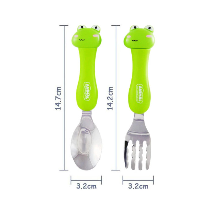 قاشق چنگال عروسکی کودک یک ست قاشق چنگال کوچک 14 سانتیمتری است که با توجه به کاور باکیفیتی که از جنس پلاستیک سخت ساخته شده است یک گزینه مناسب برای کیف نوزاد یا مادر آن به حساب میآید. این قاشقها از استیل با کیفیت ساخته شده و دسته به خوبی به آن متصل شده است.