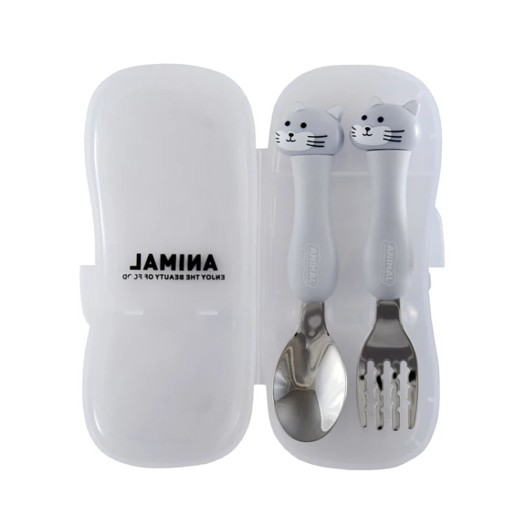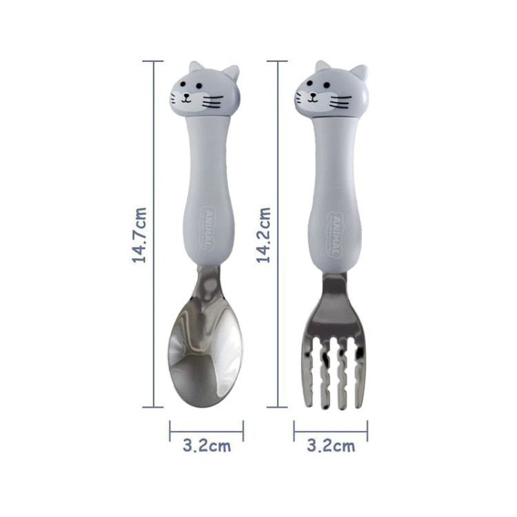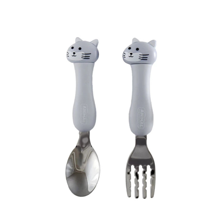 قاشق و چنگال کودک مدل دسته سیلیکونی عروسکی طرح پیشی