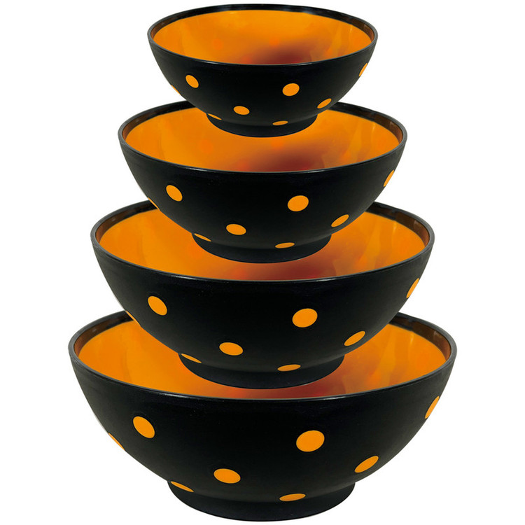 مجموعه چهار عددی کاسههای دو جداره طرح خالدار در گنجایش0.35، 0.75، 1.5 و 3 لیتری؛ مقاوم در برابر یخ زدگی و امواج ماکروویو و انواع شویندهها در ماشین ظرفشویی می باشند.