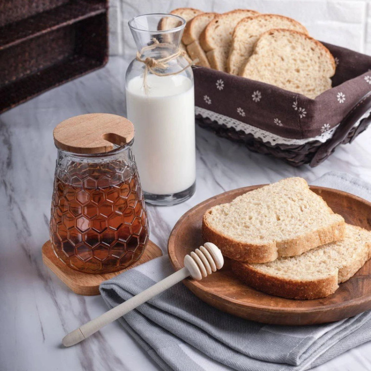شامل: ظرف عسل، قاشق عسل چوبی