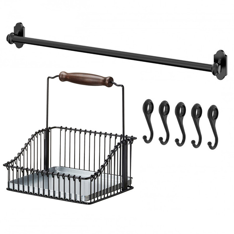 سبد و میله آویز طرح ایکیا یک وسیلهی کاربردی برای بهینه سازی و زیبا سازی فضای آشپزخانه است. این محصول با نصب آسان بر سطح دیوار و اضافه کردن سبد از طریق قلاب های آویز بر روی میله به شما این اجازه را میدهد که وسیلههایی از قبیل لیوان، گلدان، جا ادویه ای و... منظم و در فضایی زیبا برای آشپزخانه کنار هم قرار دهید. در صورتی که مستاجر هستید یا تمایلی به سوراخ کردن دیوار آشپزخانه ندارید میتوانید با چسب 123 به راحتی پایهها را روی دیوار فیکس کنید و نگران نباشید، با همین روش تحمل وزن سنگینترین فنجانها هم وجود دارد. میله آویز این محصول از جنس فلز با روکش آبکاری کوره ای و کاملا قابل شستشو بوده و طول آن 50 سانتیمتر هست و به همراه 6 عدد قلاب و یک سبد ارائه میگردد.