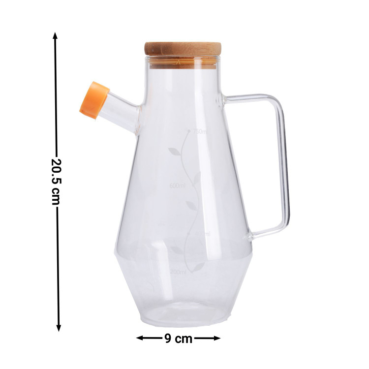 این روغن ریز از جنس پیرکس است و درب آن از جنس بامبو می باشد. بسیار مقاوم در برابر شعله مستقیم میباشد و مناسب برای استفاده به عنوان روغن ریز ،آبلیمو و سرکه و کلا انواع مایعات است. حجم آن 750 میلی لیتر میباشد اگر به مشخصات وزن توجه کنید از کالاهای مشابه خود ضخیم تر و با کیفیت تر است.