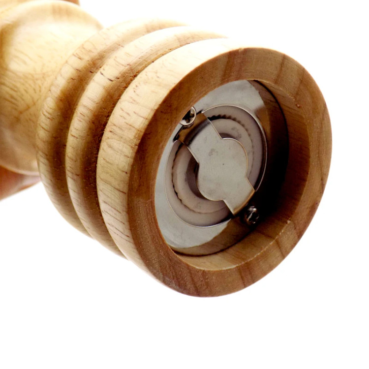 از پیچ بالایی برای باز کردن درب فلفلساب و همچنین برای تنظیم میزان آسیاب شدن فلفلها استفاده کنید. هرچقدر پیچ سفتتر باشد، دانههای فلفل ریزتر میشوند.