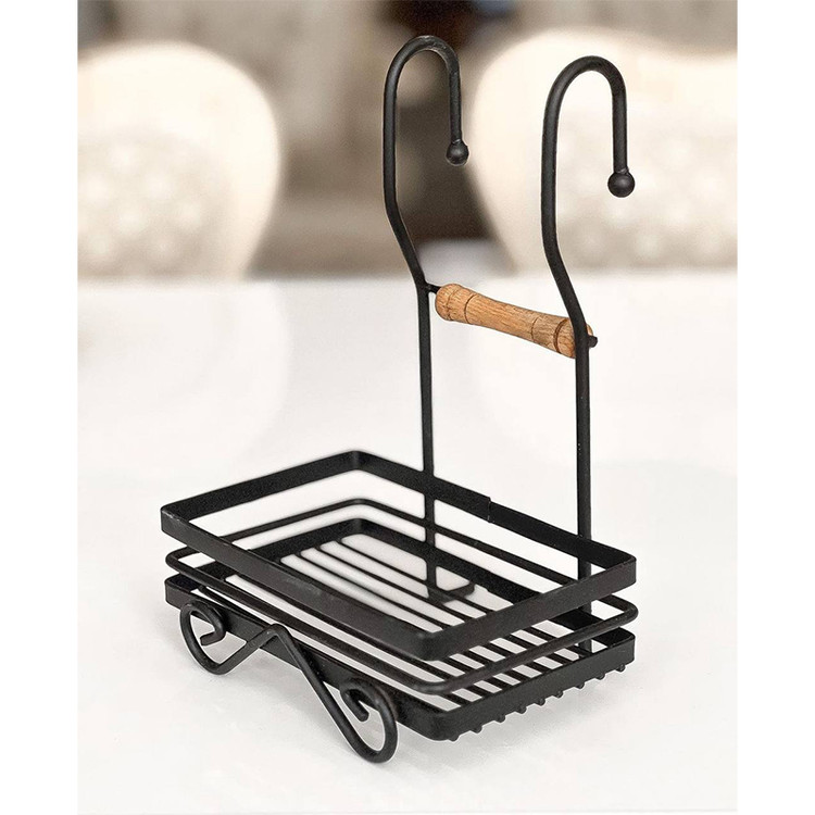 جا اسکاچی لیمیتاک مدل صبا ساخته شده از فلز آهن با روکش رنگ الکترواستیک مشکی می باشد که روکش رنگ آن باعث زیبایی بیشتر محصول و جلوگیری از زنگ زدی در مقابل رطوبت و آب می شود.طراحی این جا اسکاچی به گونه ای است که قابلیت آویز کردن از میله سوپر آشپزخانه،آبچکان کابینتی و یا جاظرفی های کنار سینک را دارد.اگر گزینه هایی که گفته شد هم در دسترس نباشد نگران نباشید زیرا جا اسکاچی صبا دارای پایه هایی است که امکان قرارگیری بر روی سطوح صاف مانند سینک ظرفشویی و کابینت را هم فراهم می کند. از این استند هم به عنوان جا اسکاچی و هم به عنوان استند جا مایع میتوانید استفاده نمایید. محصولات فلزی صبا از برند لیمیتاک با مشخصه ی چوب از دیگر محصولات آن متمایز شده است.