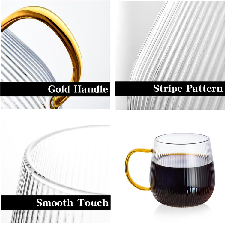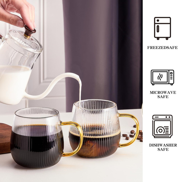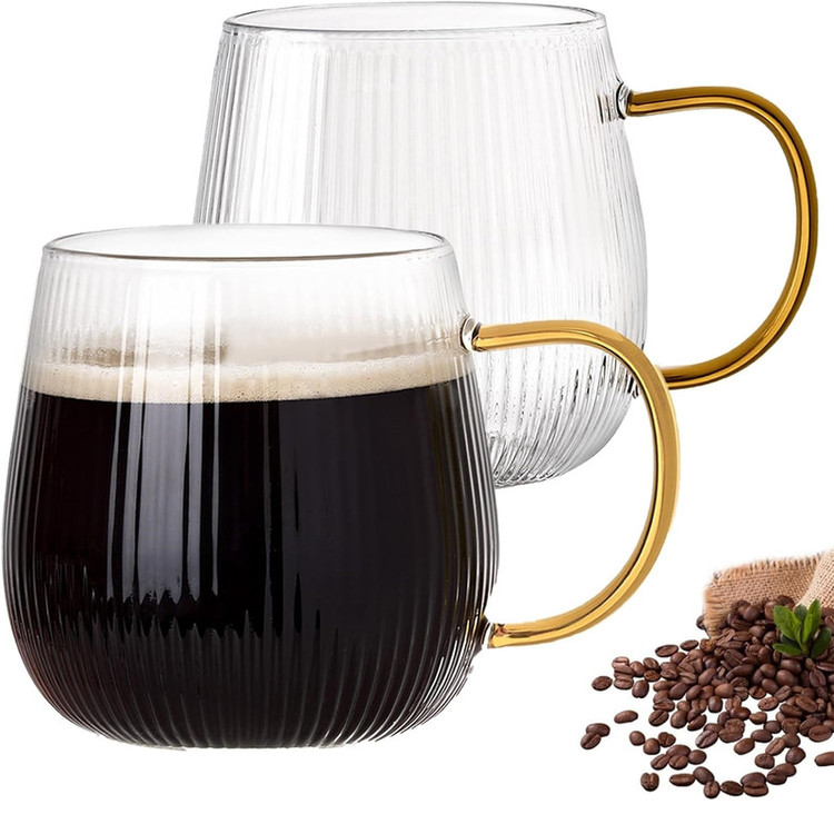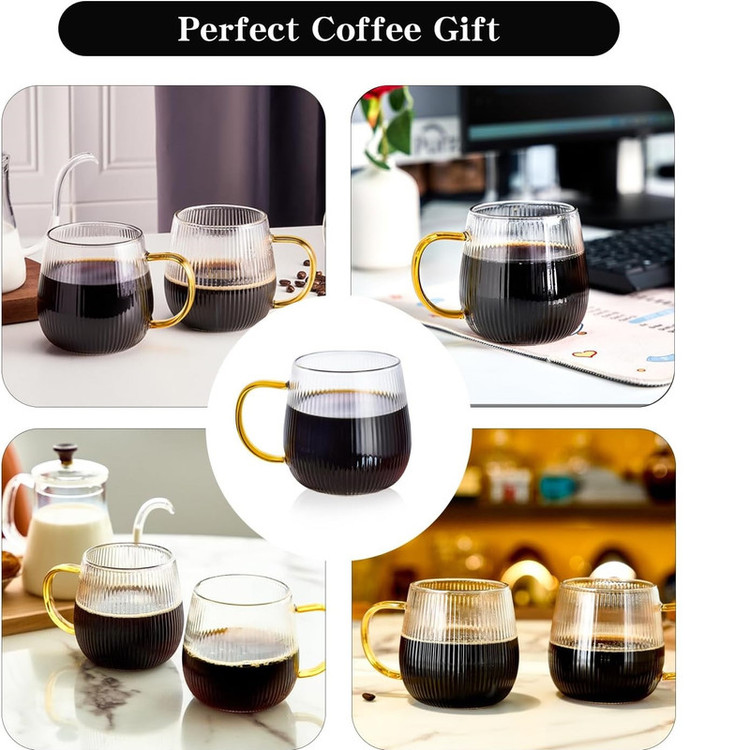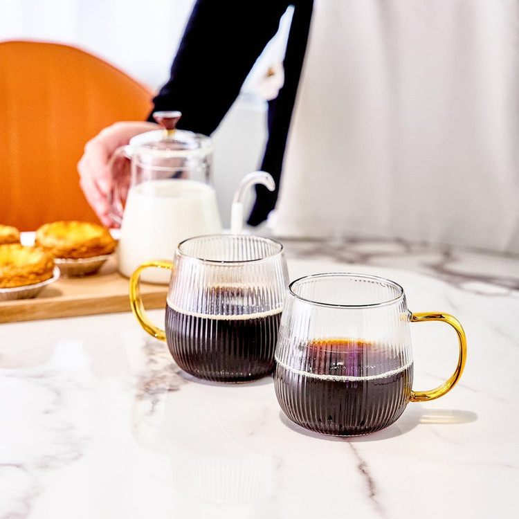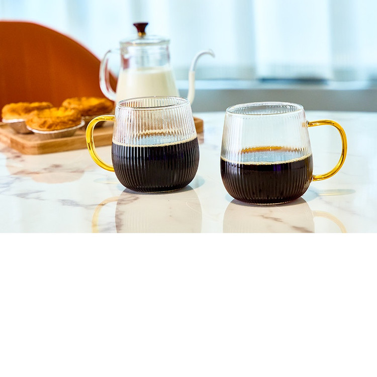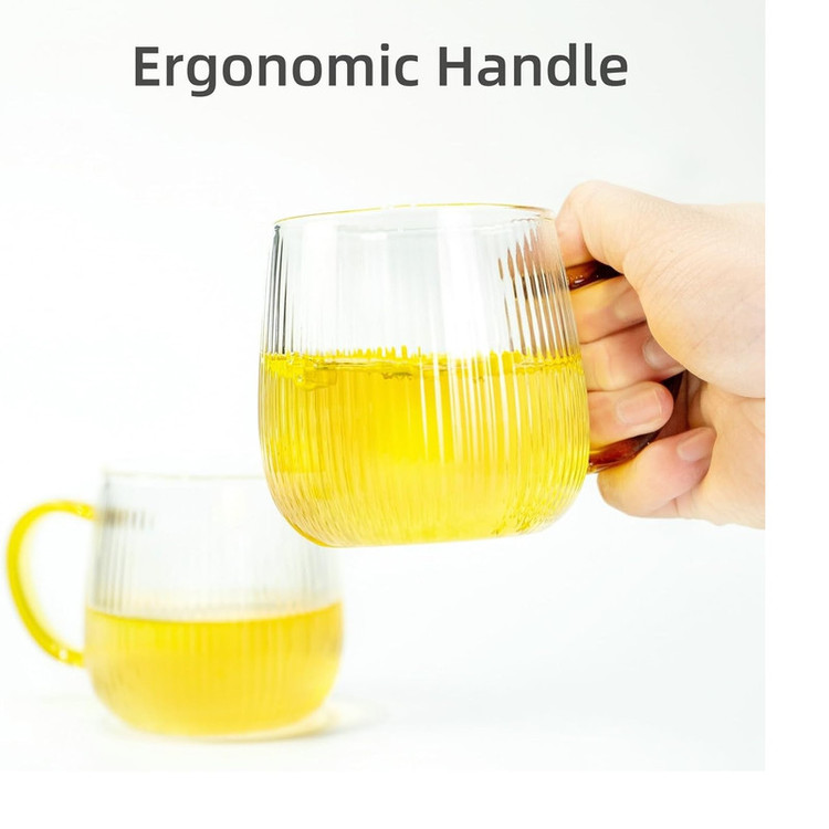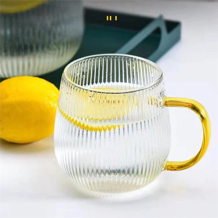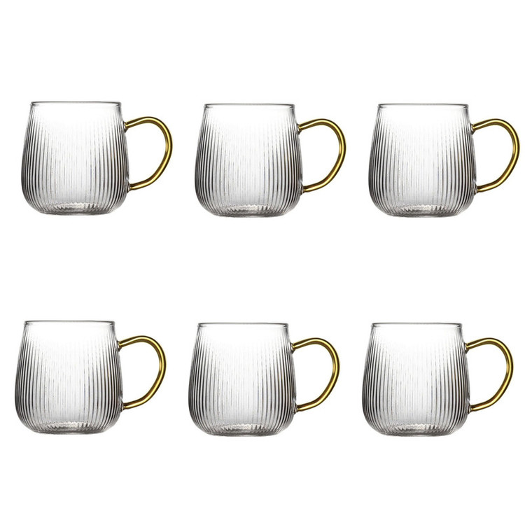 لیوان پیرکس دسته رنگی مدل شیاردار مجموعه 6 عددی