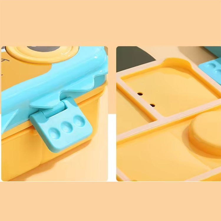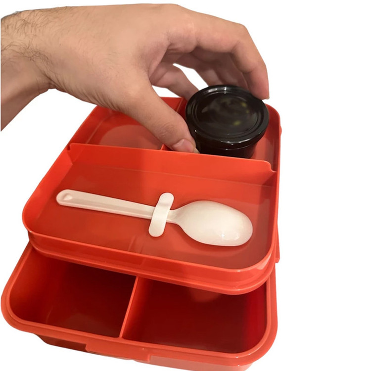 ظرف غذا کودک مدل دایناسور این ست ظرف نگهدارنده غذای کودک همراه با قاشق و ظرف جداگانه در دار برای سس و غیره ساخته شده از جنس پلاستیک درجه A++ و کاملا فاقد مواد مضر BPS-BPA بوده و کیفیت مرغوب آن وجه تمایز شاخص این کالا از دیگر محصولات است. به دلیل عدم وجود مواد مضر در ترکیبات آن می توان این ظرف را هم در ماکروویو و هم در ماشین ظرفشویی قرار داد.درب این ظرف به طور کامل و بدون هیچگونه راه هوا بسته می شود. در نتیجه برای نگهداری مواد غذایی در یخچال و فریزر به علت عدم انتشار بو و همچنین عدم نفوذ هوا به داخل ظرف گزینه ی بسیار مناسبی برای نگهداری طولانی مدت می باشد. به هنگام قرار دادن در ماکروویو توصیه می شود درب ظرف را بردارید یا به صورت اریب روی آن قرار دهید. همچنین از تماس مستقیم با شعله آتش خودداری شود. این لانچ باکس از سه قسمت مجزا برای غذا-سالاد-ماست و... تشکیل شده است که دارای درپوش و قسمت جداشونده است که میتواند ظرفیت جداگانه ای برای قرار دادن قاشق-چنگال-کارد-دستمال و غیره به شما بدهد. درب آن کاملا بسته می شود و هیچگونه نشتی ندارد از این رو میتواند به راحتی در کیف مسافرتی-کوله و در جاهای مختلف حمل شود.این ست بسیار سبک و طرح روی آن با رنگهای جذاب و شاد دایناسور برای بچه ها بسیار جذاب است. این ست کاملا محکم و سبک است و موقع برخورد با سطوح مختلف نمی شکند. این محصول ساخت کشور چین است.