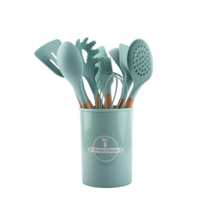 سرویس کفگیر و ملاقه Kitchen Dining ساخته شده از با کیفیت ترین مواد سیلیکون با استاندارد FDA و بدون BPM ، دسته های چوبی از جنس بامبو و یک ظرف نگهدارنده از جنس پلاستیک میباشد. این سرویس از وزن متعادل و دیزاین منحصر بفردی برخوردار است که باعث میشود در دست گرفتن آن آسان و پخت و پز را راحت می کند. سیلیکون به کار رفته در این محصول ساخته شده از مواد غیر سمی ، بی بو و سازگار با محیط زیست است. این مجموعه وسایل آشپز خانه در برابر درجه حرارت سرما تا 30- و گرما 230+ درجه سانتی گراد مقاومت دارد. انعطاف پذیری ، رویه های نرم از خراشیدن و آسیب رساندن به ظروف شما جلوگیری میکند و همچنین باعث کاهش سر و صدا هنگام آشپزی می شود. این مجموعه متشکل از 11 عدد کفگیر ملاقه سیلیکونی و 1 عدد ظرف نگهداره می باشد.