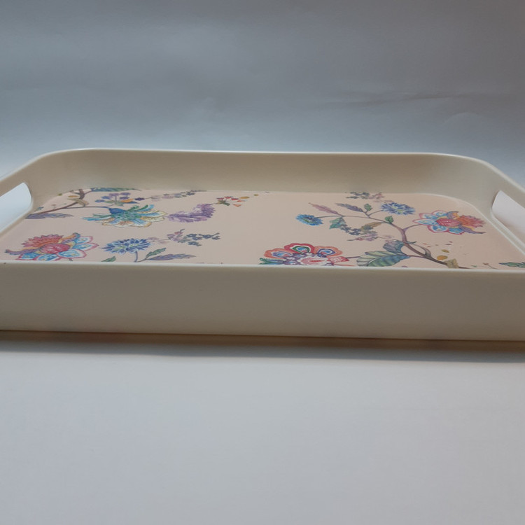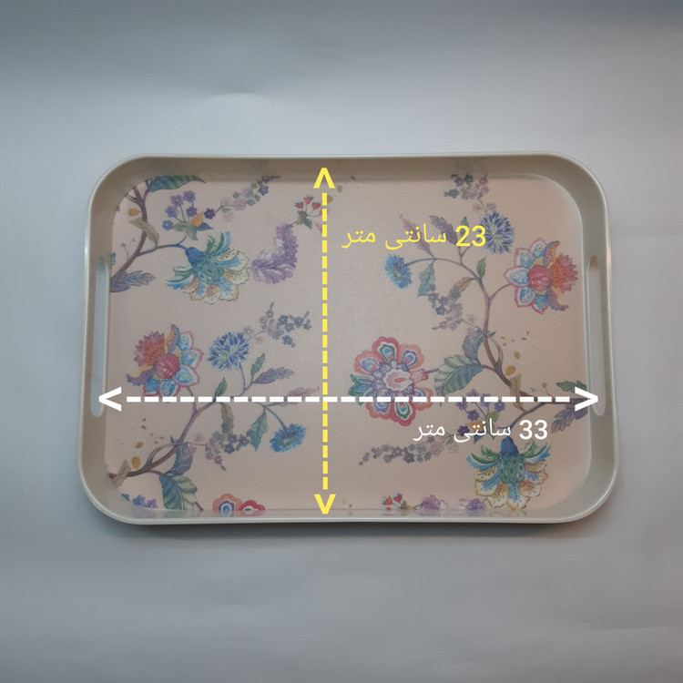 جنس این سینی ملامین بوده که ساخته شده از بهترین ملامین و نشکن میباشد. از این سینی میتوانید برای سرو چایی و شیرینی و آب میوه در مهمانی ها و مراسم خود استفاده کنید. طرح چاپ شده بر روی این سینی با گذشت زمان از بین نمی رود و کیفیت چاپ بسیار عالی دارد.