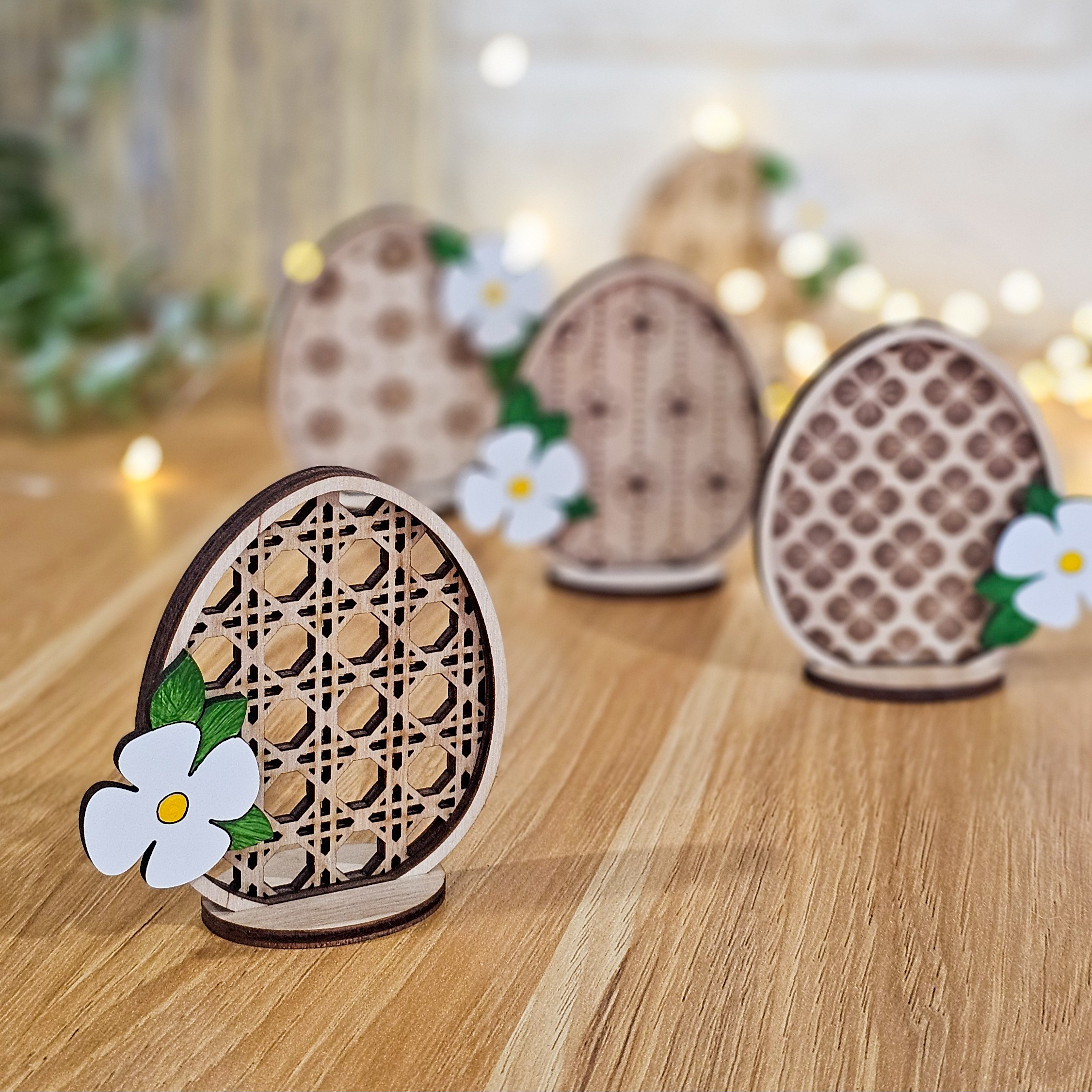 این دکوری جذاب مناسب هفت سین های نوروزی است. تخم مرغ که در رسوم ما جزئی از آیتمهای همیشگی هفتسین هست در مدلهای متنوع مورد استفاده قرار میگیرد. این دکوری جذاب همچنین در آشپزخانه یا کافی بارهای خانگی نیز قابل استفاده بوده و با طراحی گلهای بهاری که روی آن کار شده جلوهای بسیار زیبا به فصا میبخشد.